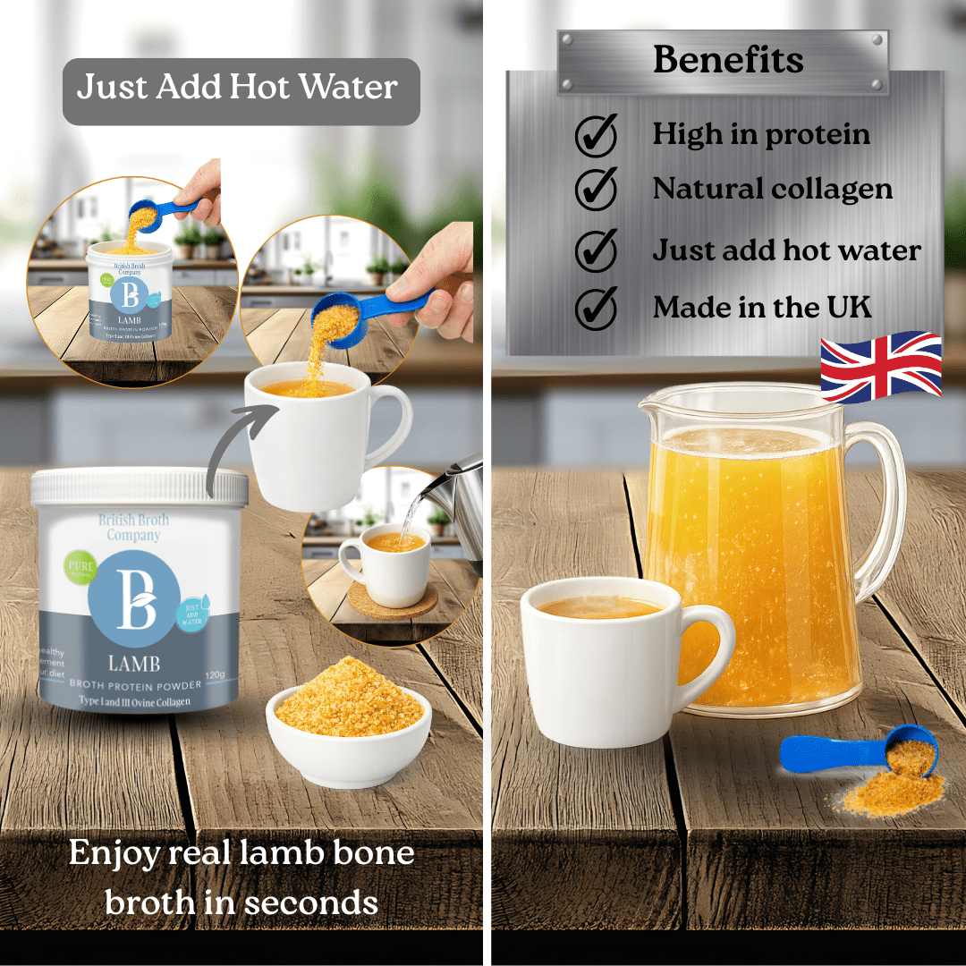 Savour the nourishing goodness of our Dehydrated Lamb Bone Broth! 🐑✨